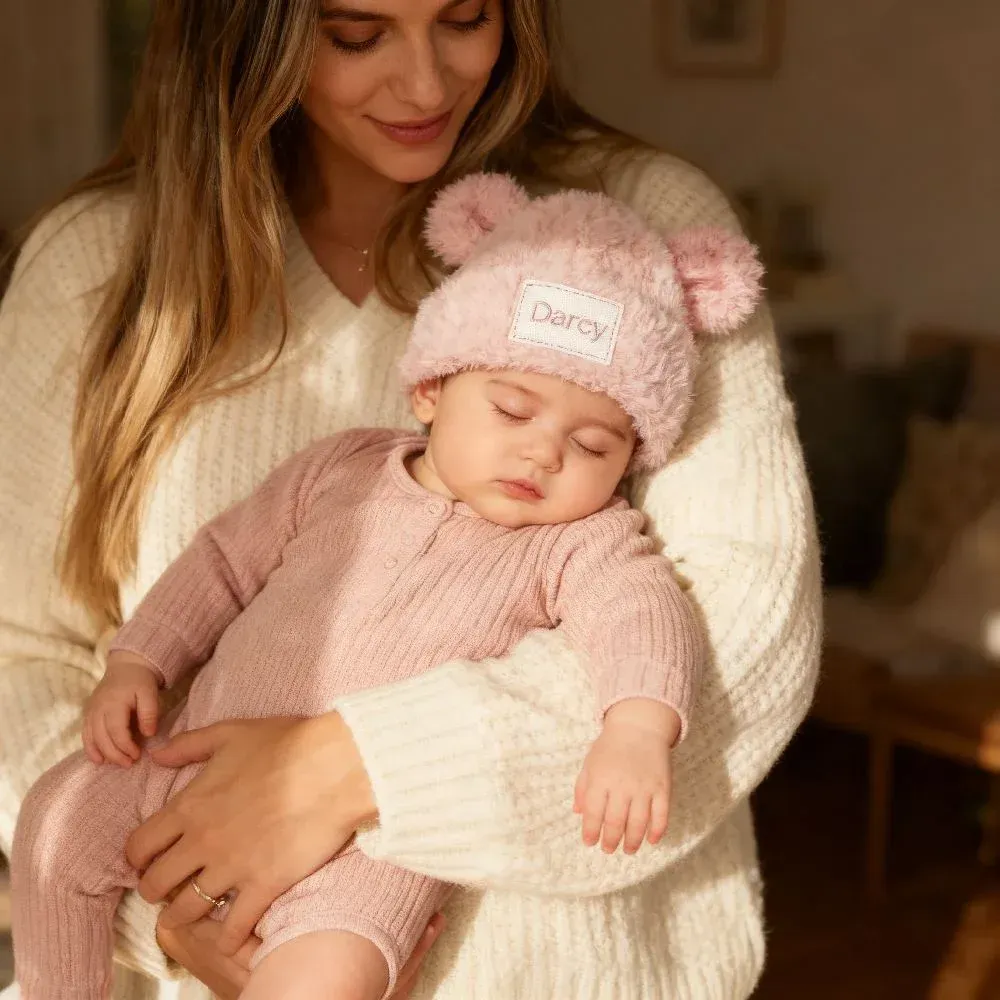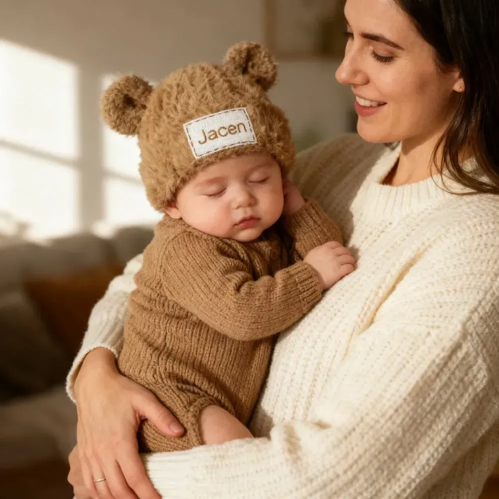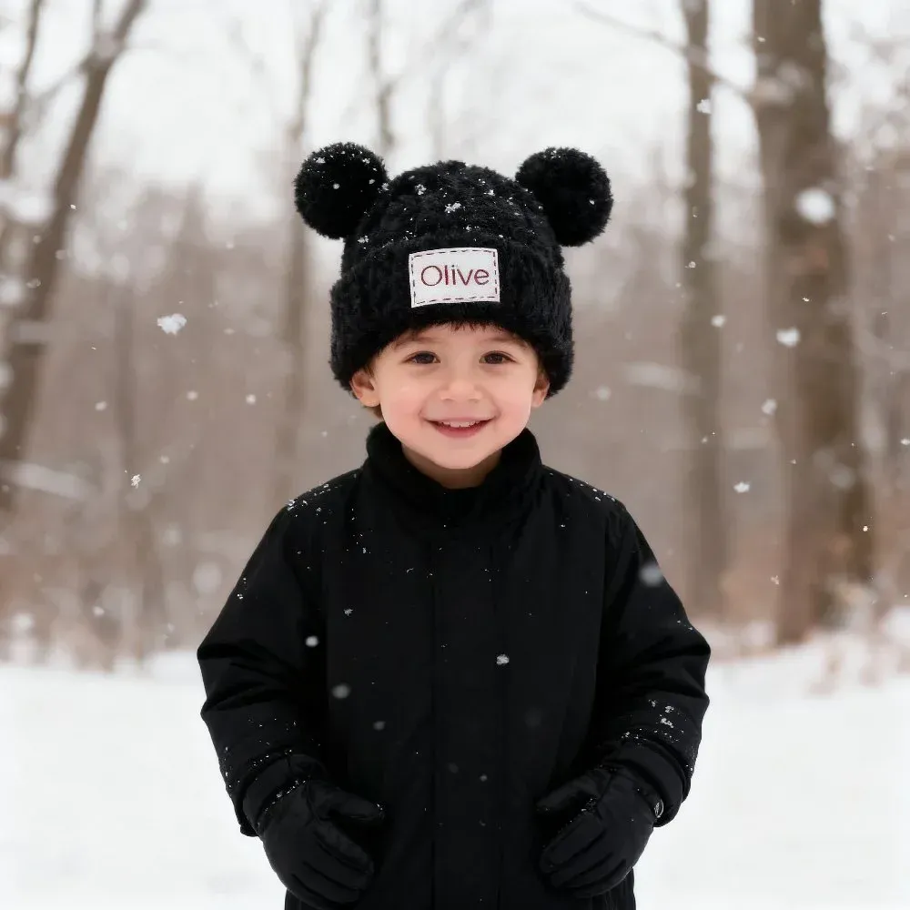 Personalized Cute Bear Ears Windproof Furry Beanie Hat with Embroidery Name Baby Shower Gift for Baby Toddler Ship in: 1-3