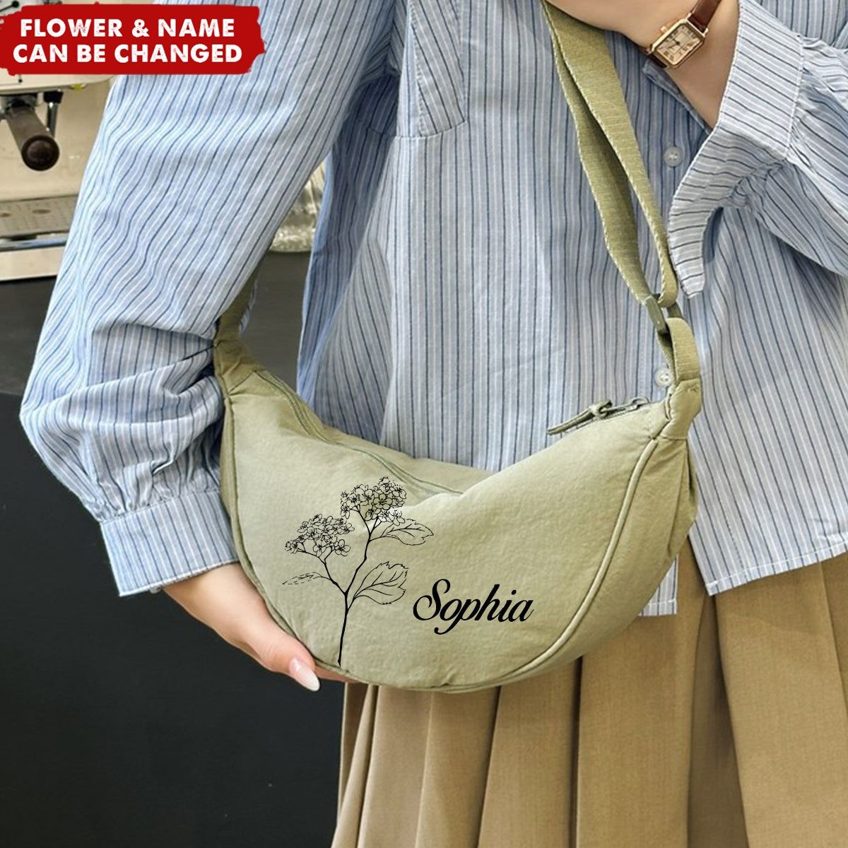 Birth Flower Underarm Crescent Shoulder Backpack Personalized Phone Crossbody Bag