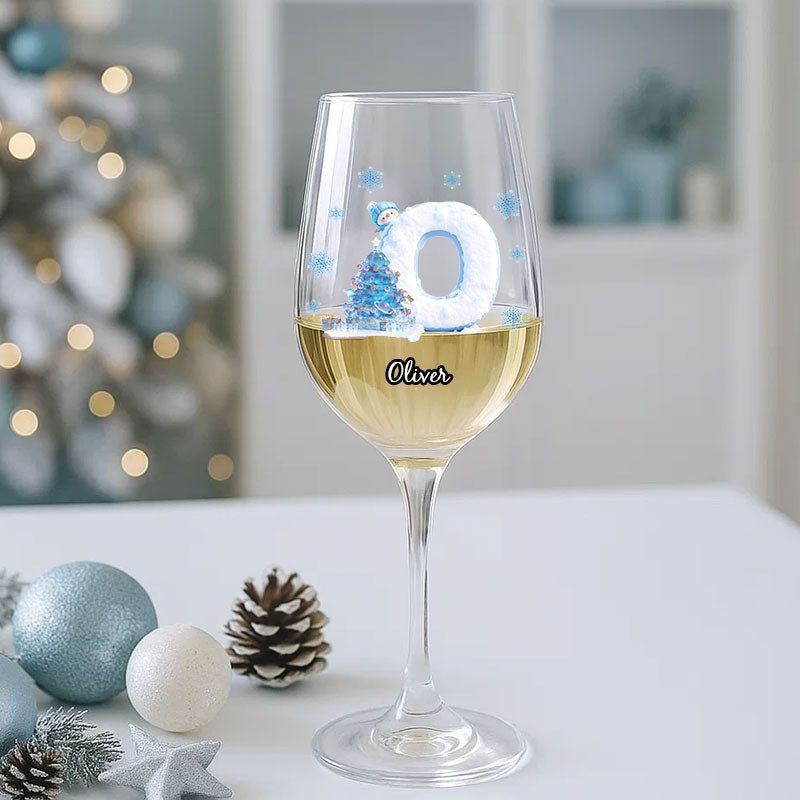 Merry Christmas - Personalized Blue Christmas Tree Long Stem Family Wine Glass