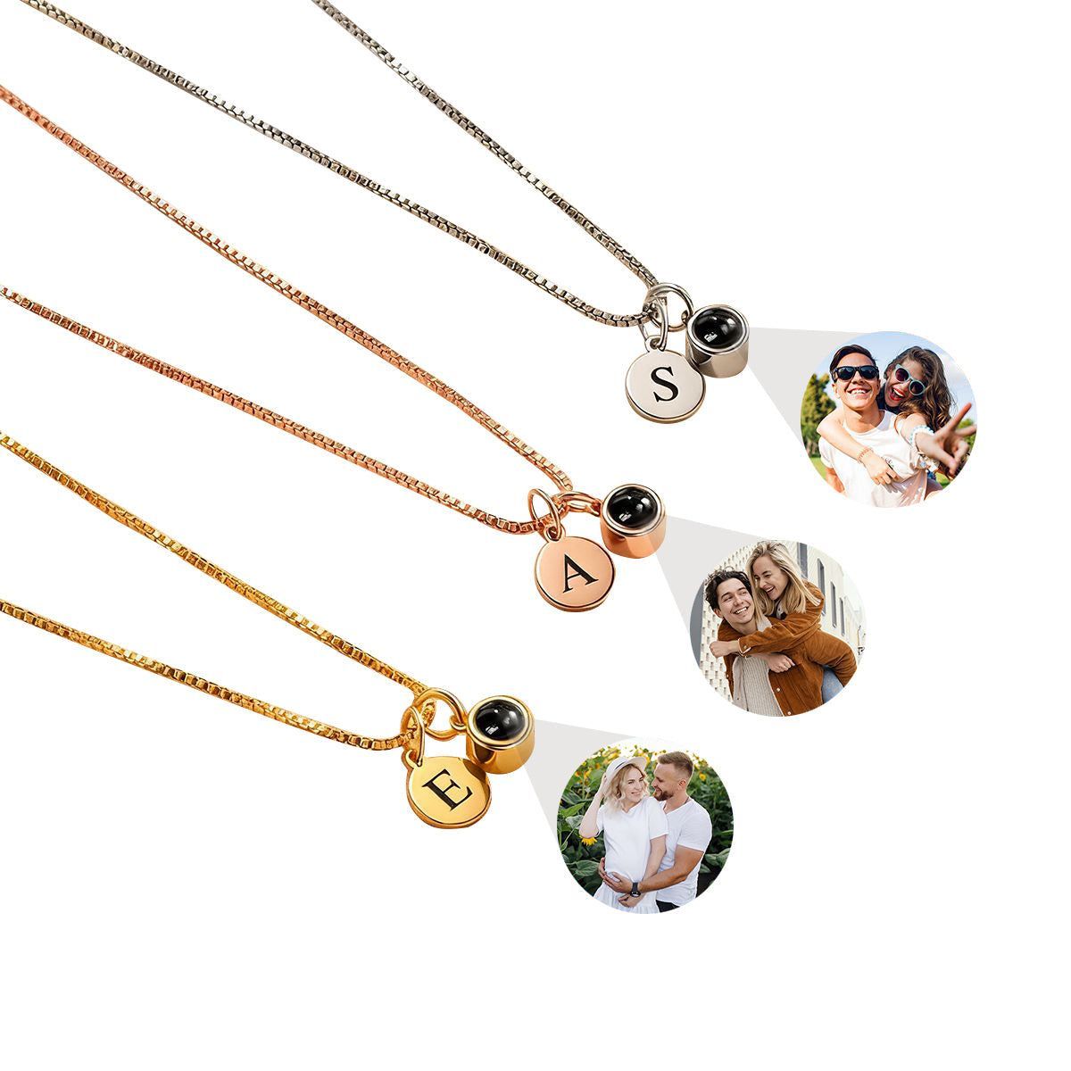 Personalized Engraved Initial Disc Photo Projection Necklace - Birthday Anniversary Gift for Women