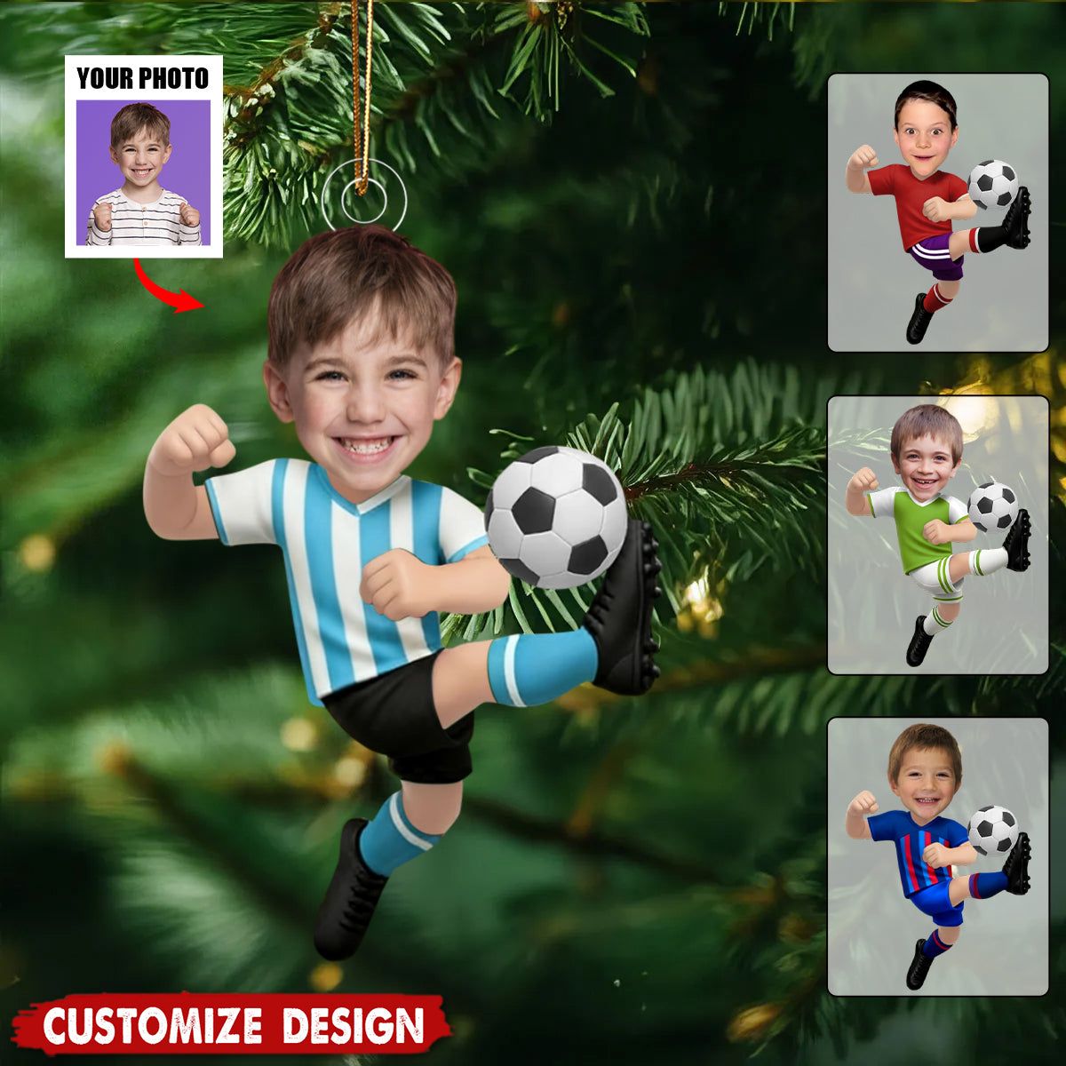 Personalized Kid Photo Soccer Ornament - Gift For Boy Girl Soccer Lovers