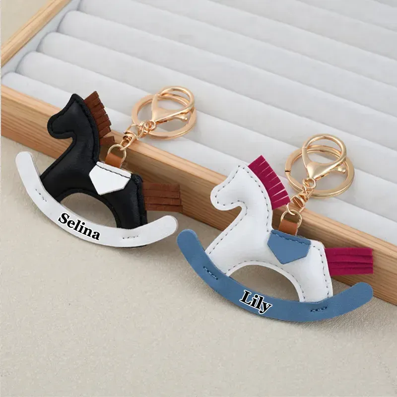 🐎 Personalized rocking horse keyring made from PU leather