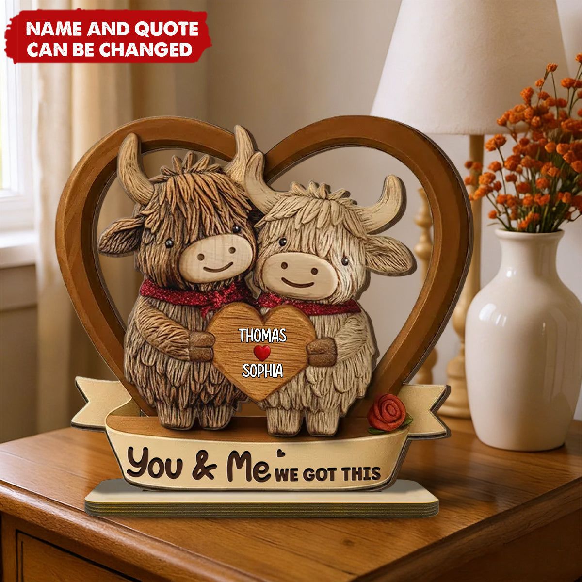 Highland Cow Couple Heart-Shaped Wooden Plaque - Anniversary Gift, Valentine's Day Gift.