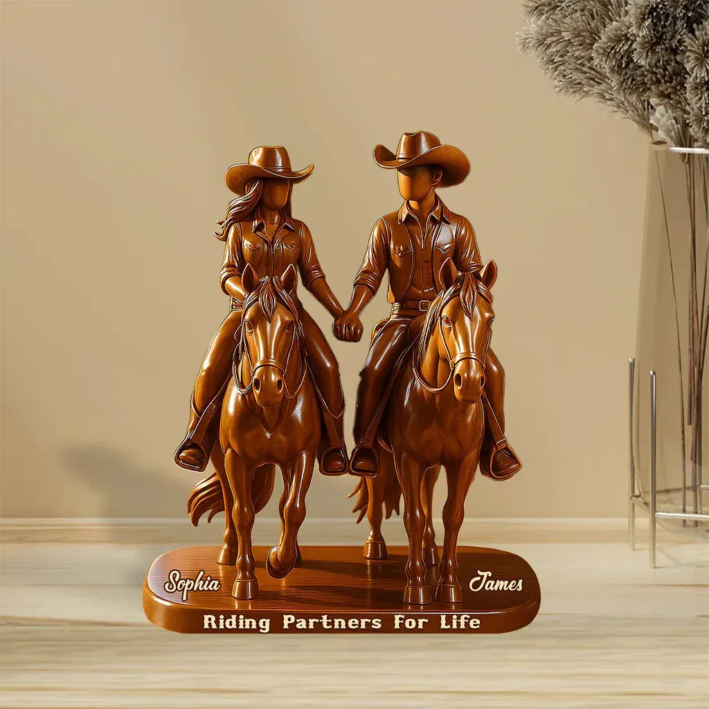 Riding Partners For Life - Personalized Couple's Custom Denim Acrylic Plaque