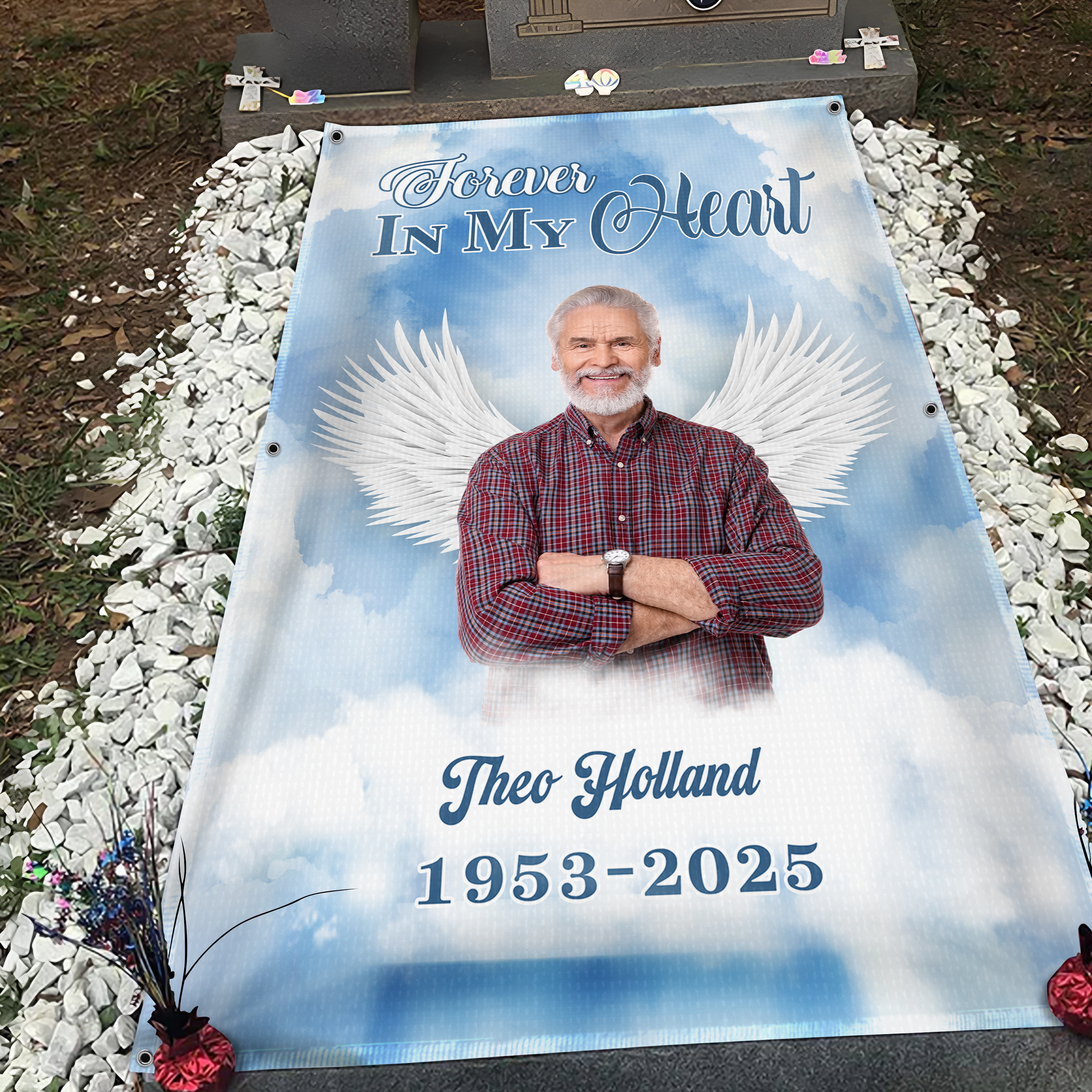 Custom Photo Forever In My Heart Memorial Heaven Grave Blanket