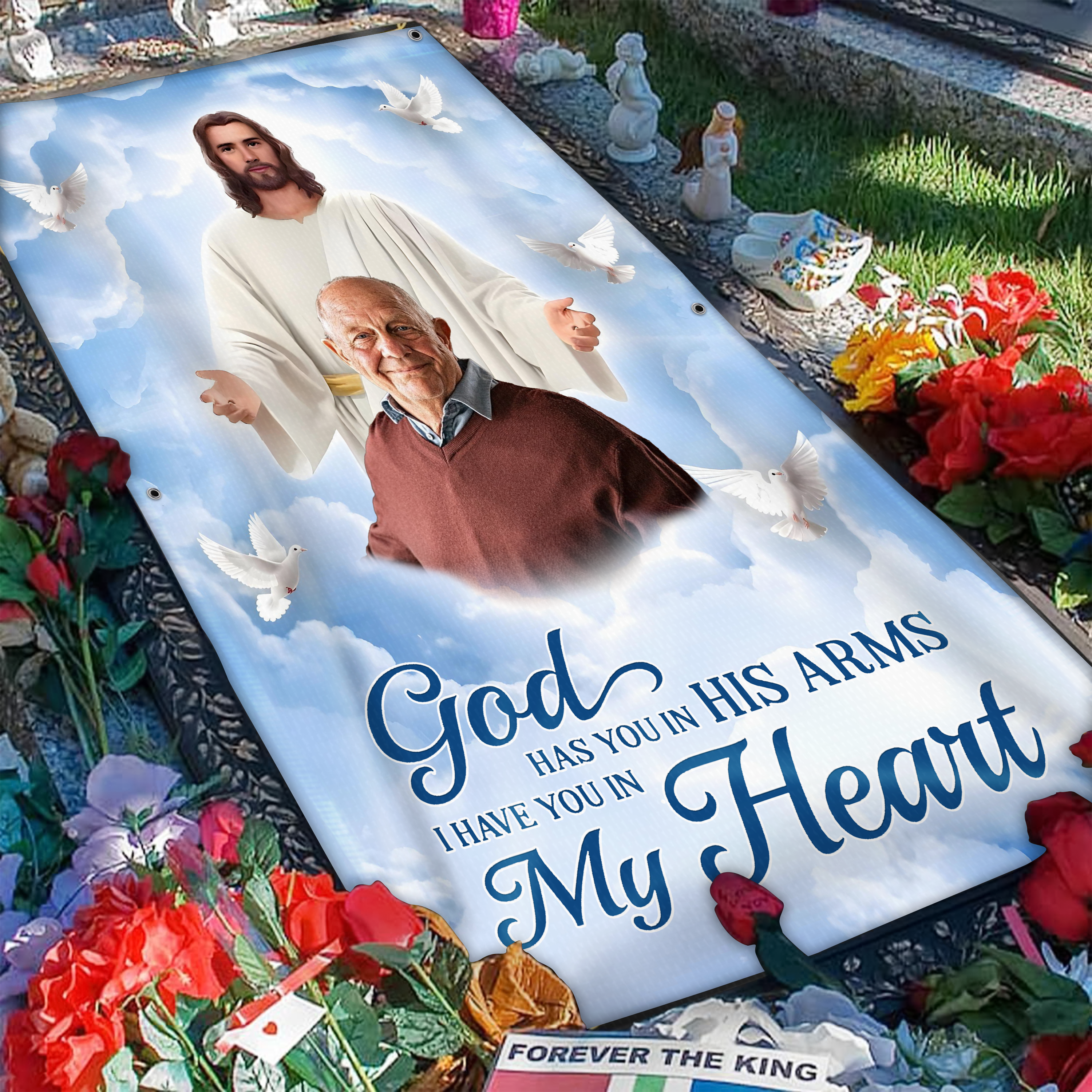 Custom Photo God Has You in His Arms Memorial Grave Blanket S3